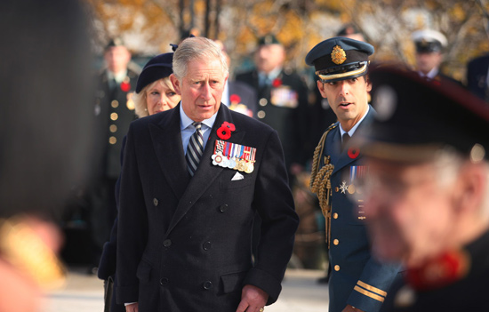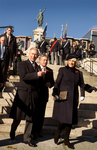 Their Royal Highnesses, The Prince of Wales and The Duchess of Cornwall, during a visit to the National War Memorial in St. John's.