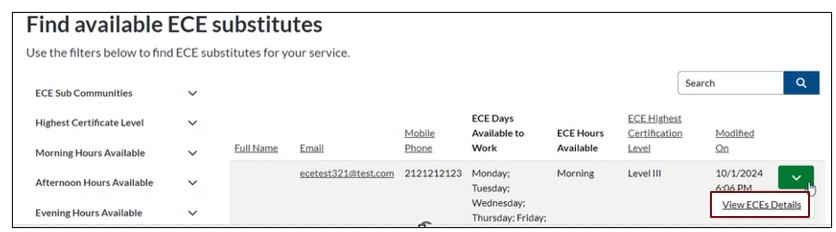 • view the list of ECEs who are registered as an ECE substitute in the Early Learning Gateway
