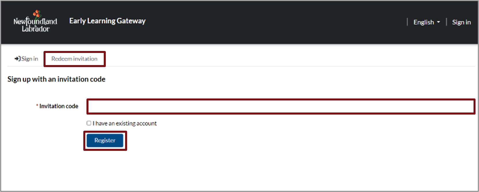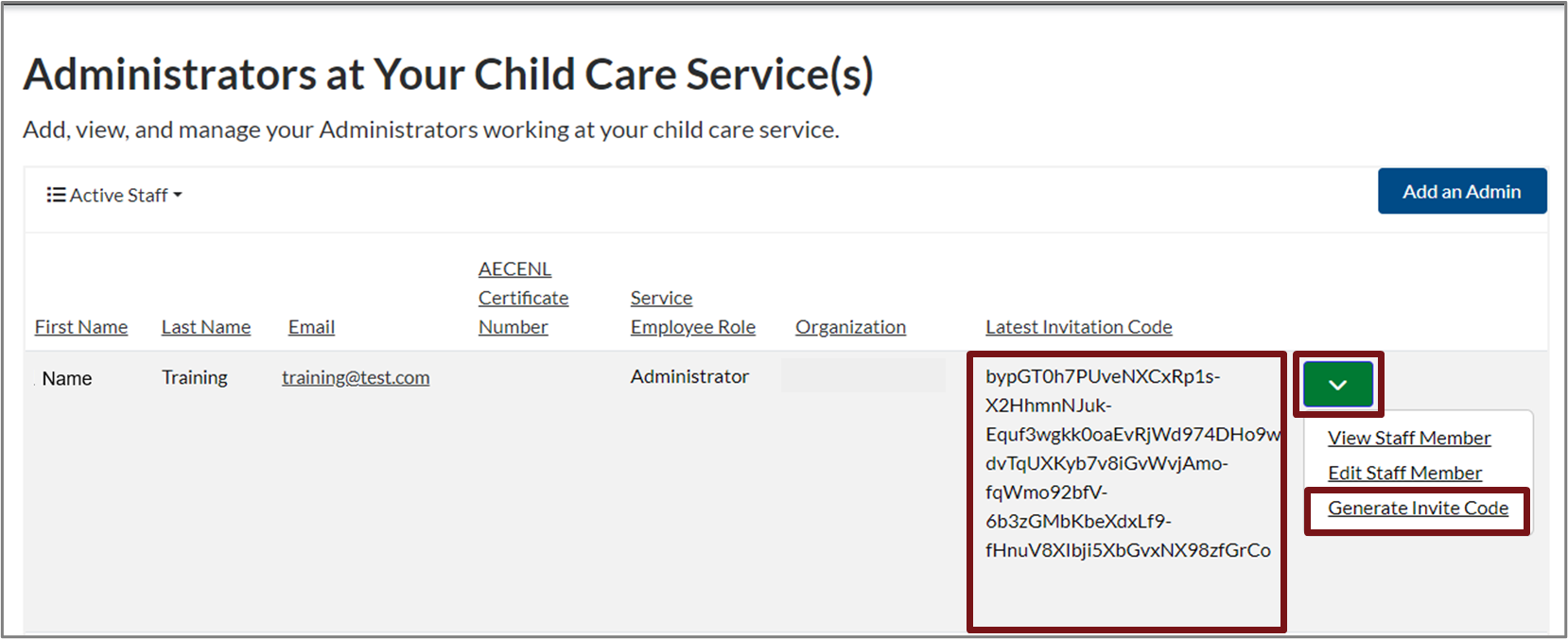 You can generate an invite code for your admin to create a username and password for the Early Learning Gateway Service Portal.
