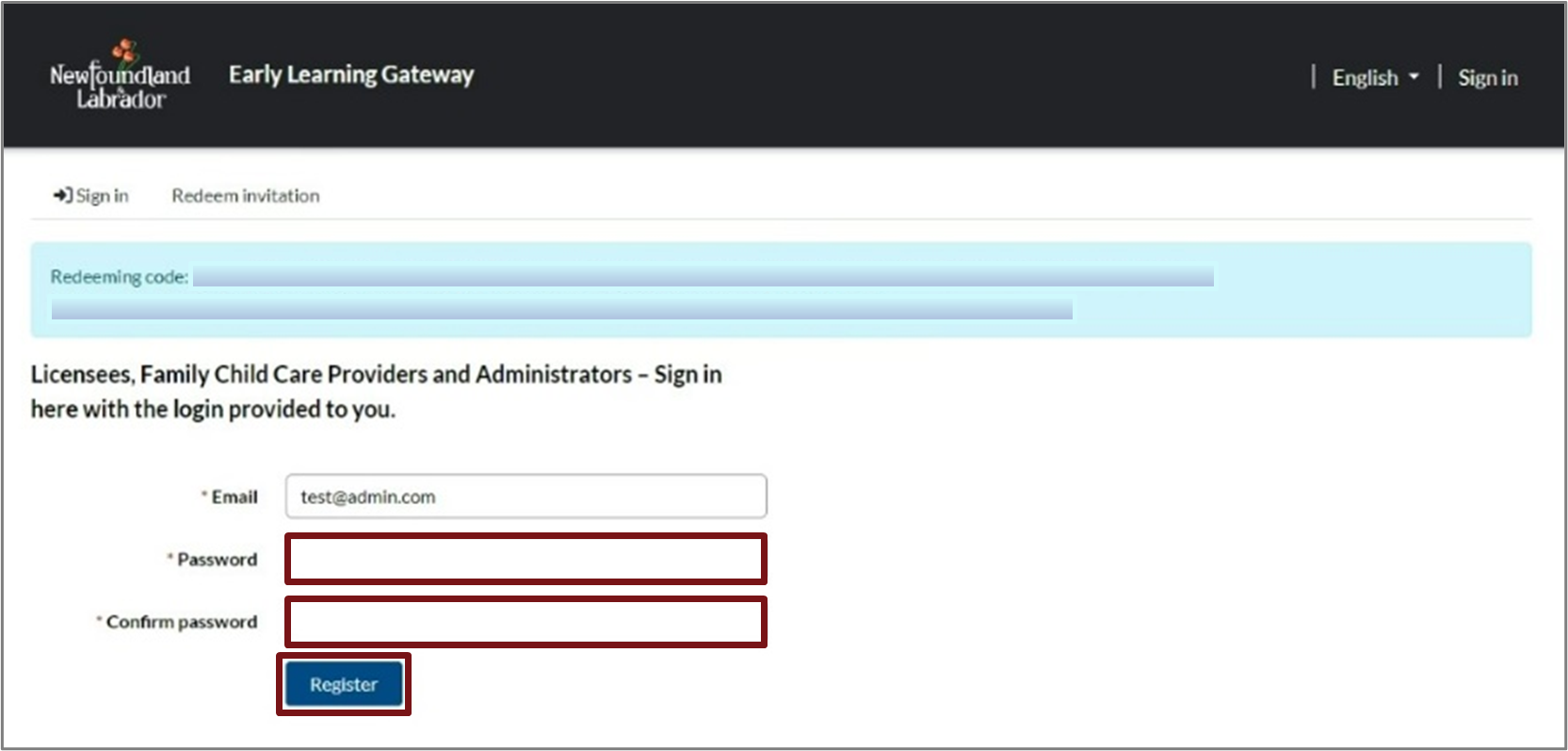 On the login screen, click the Redeem invitation tab. Enter the Invitation code that you received via email, then click Register.