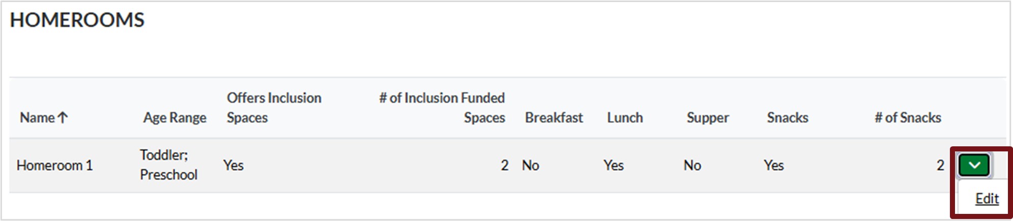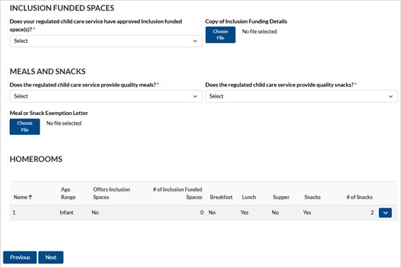 If you have Inclusion Funded Spaces, choose the Homeroom(s) they belong to.