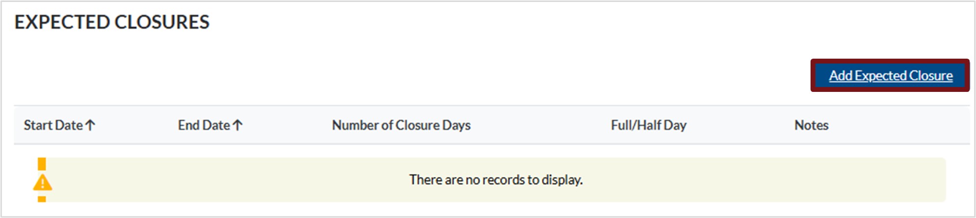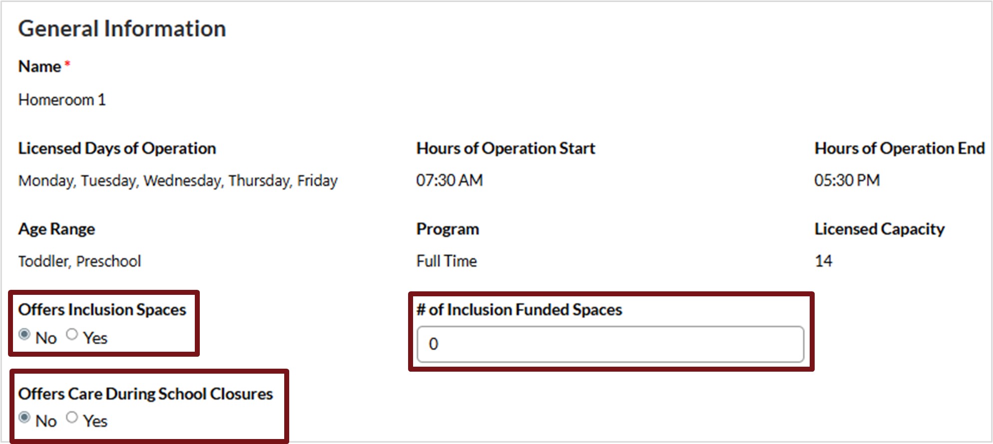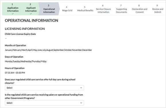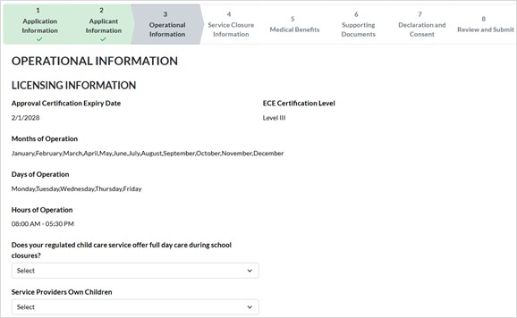 2. Click in the field provided to select the appropriate response to indicate if your regulated child care service offers full day care during school closures.