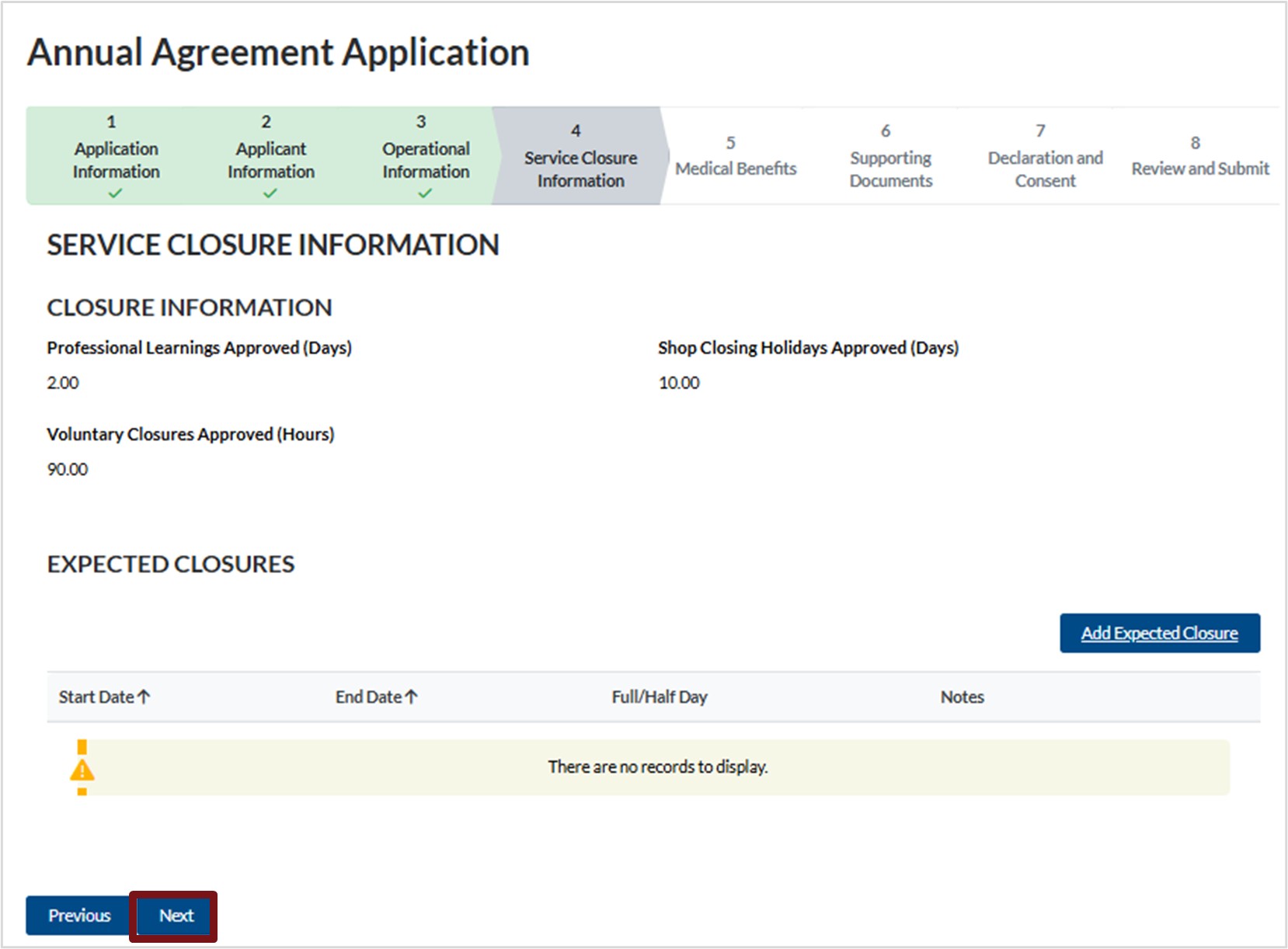 In Progress Annual Agreement Applications
