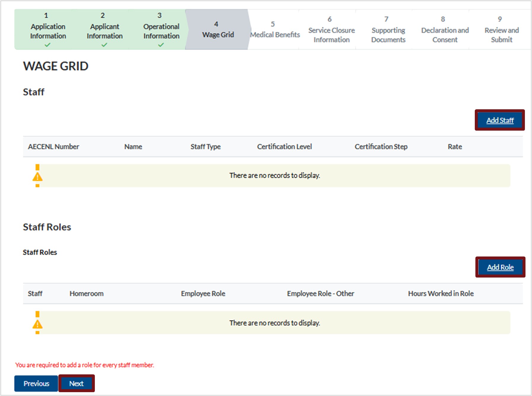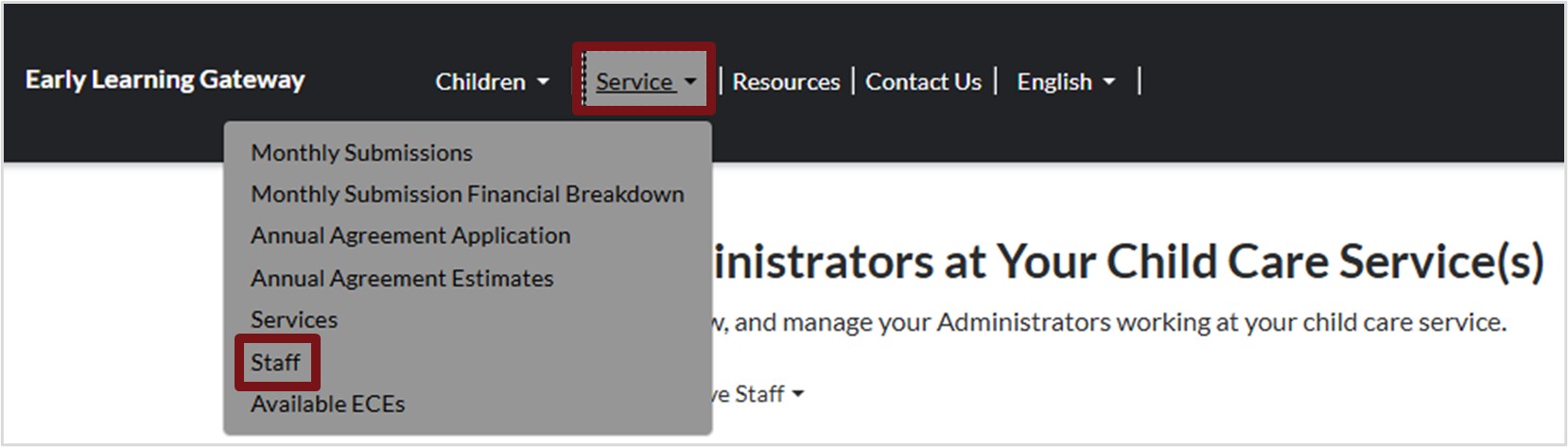 Please note: Family child care providers will not see the staff option within the Early Learning Gateway service portal.