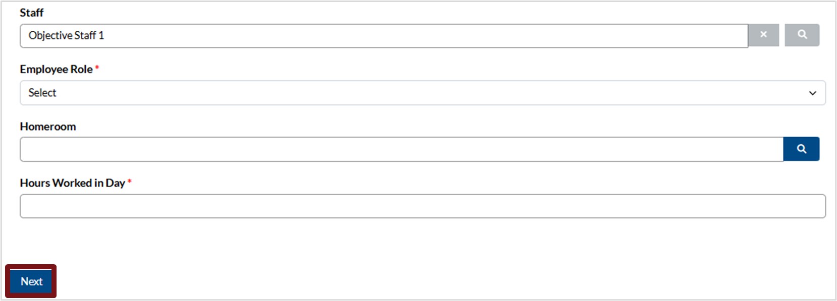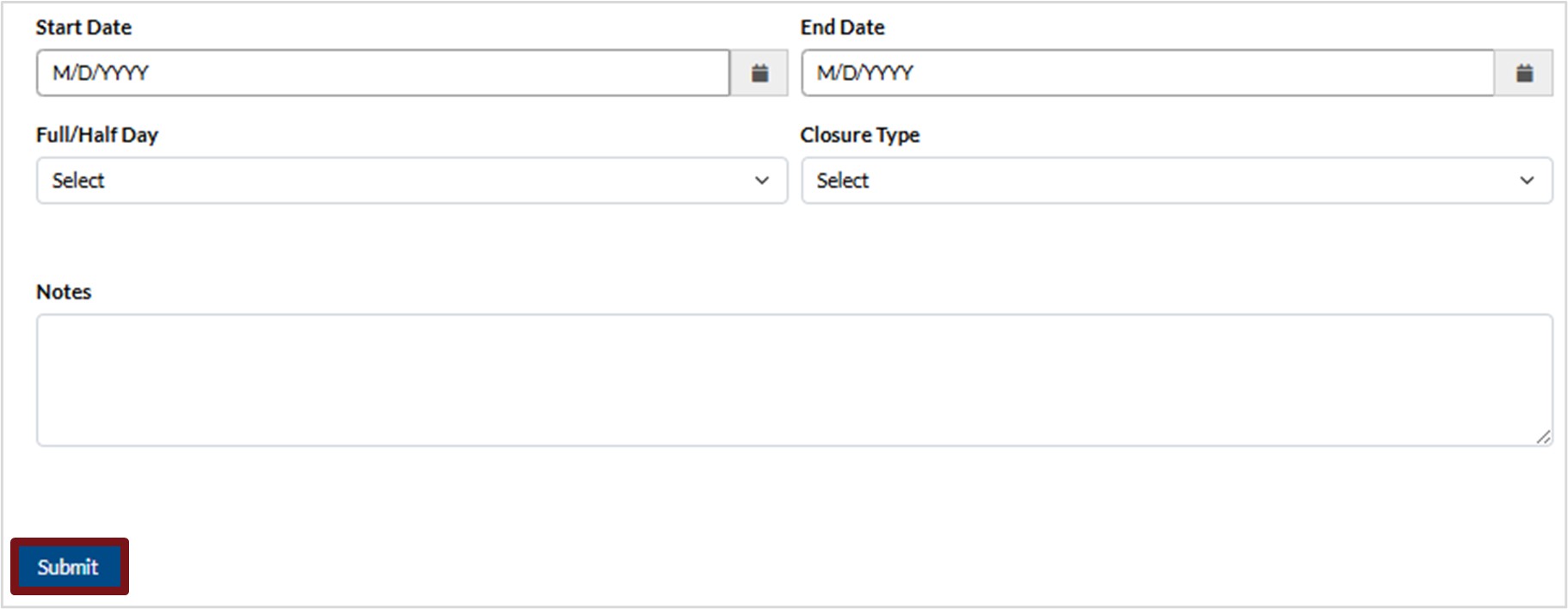 c. Click in the field provided, select Full or Half Day.