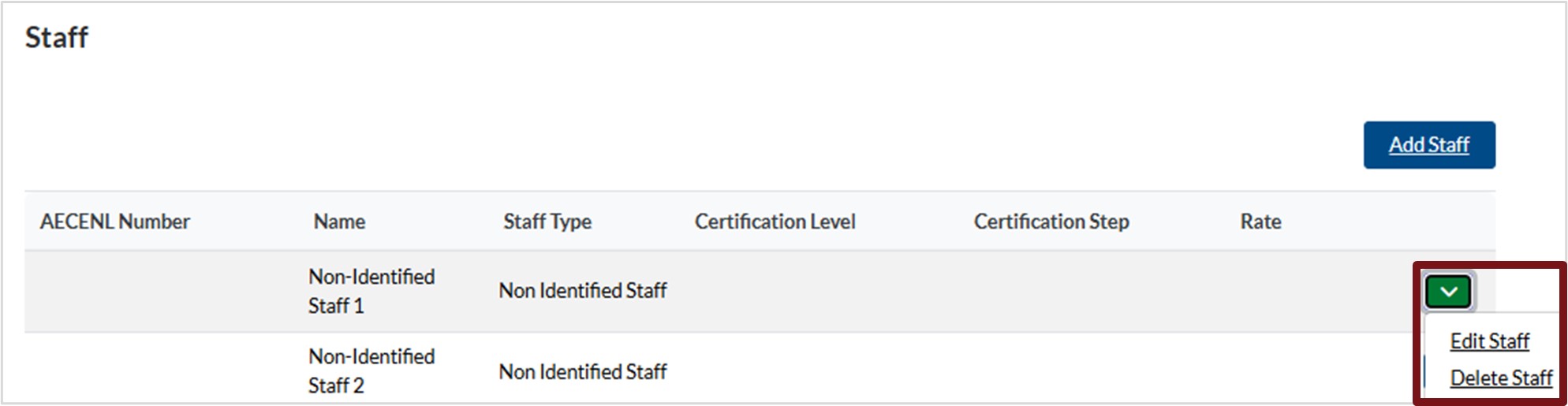 Manage Staff