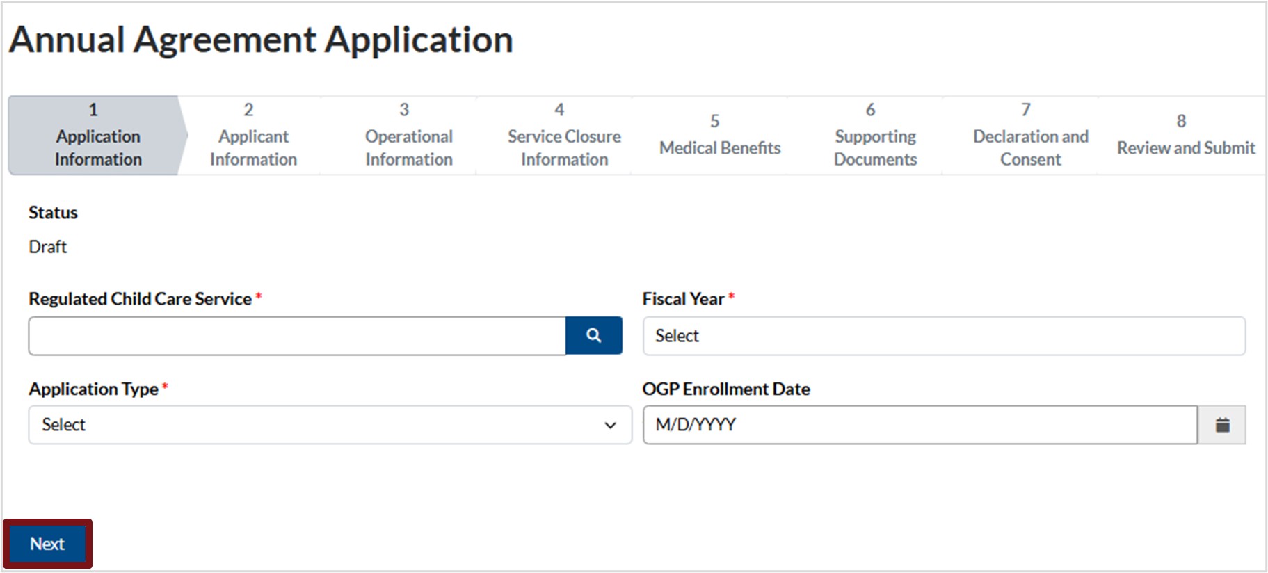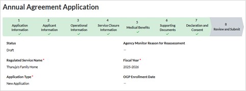 Annual Agreement Application : Family Based