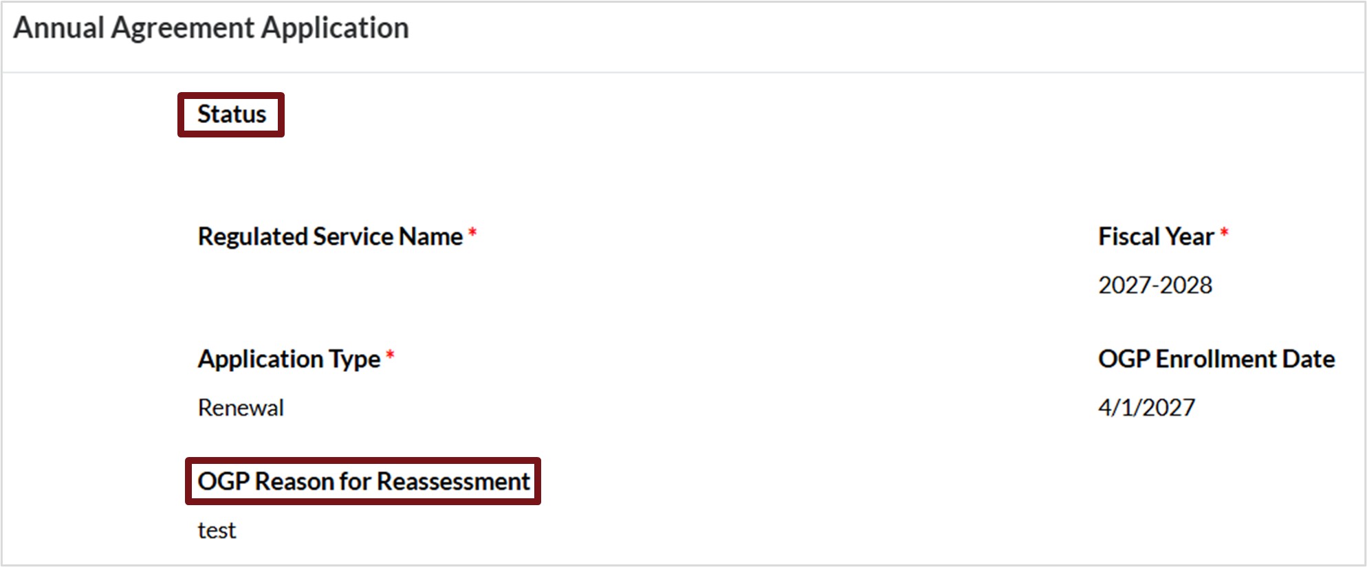 Once you submit your annual agreement, its status will change to Agency Review. After the OGP team finishes reviewing it, and the application has met all requirements, the status will update to Service Signature Required Annual Agreement Applications. When this happens, you will receive an email from the ELG letting you know that your signature is needed.