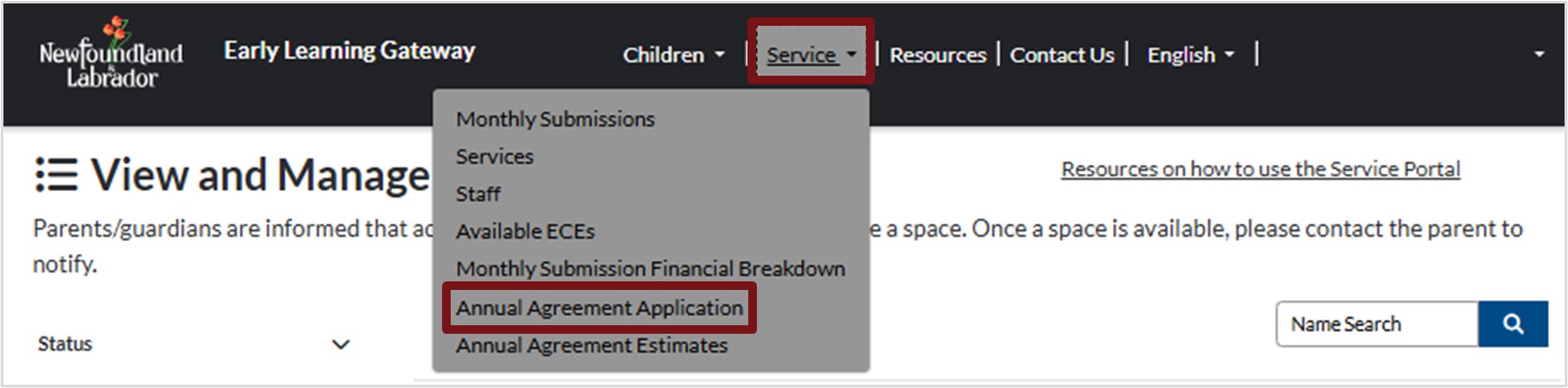 Welcome to the Early Learning Gateway Service Portal