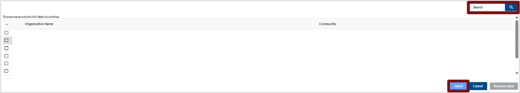 Please note: To add your community you will have to click the magnifying glass and select your community.