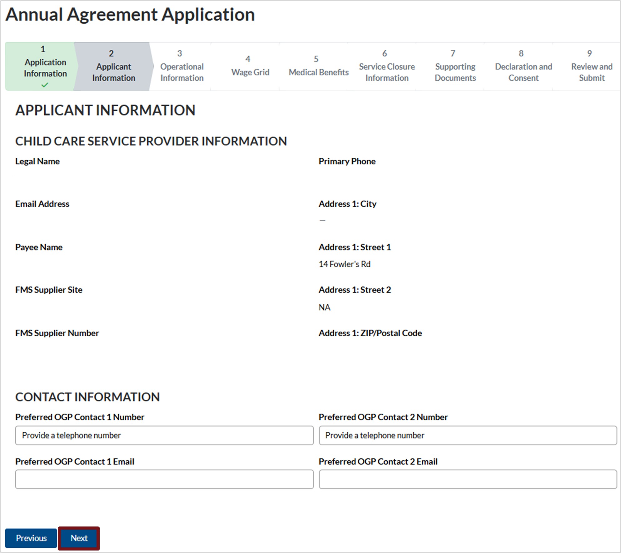 1. Review the child care service provider information.