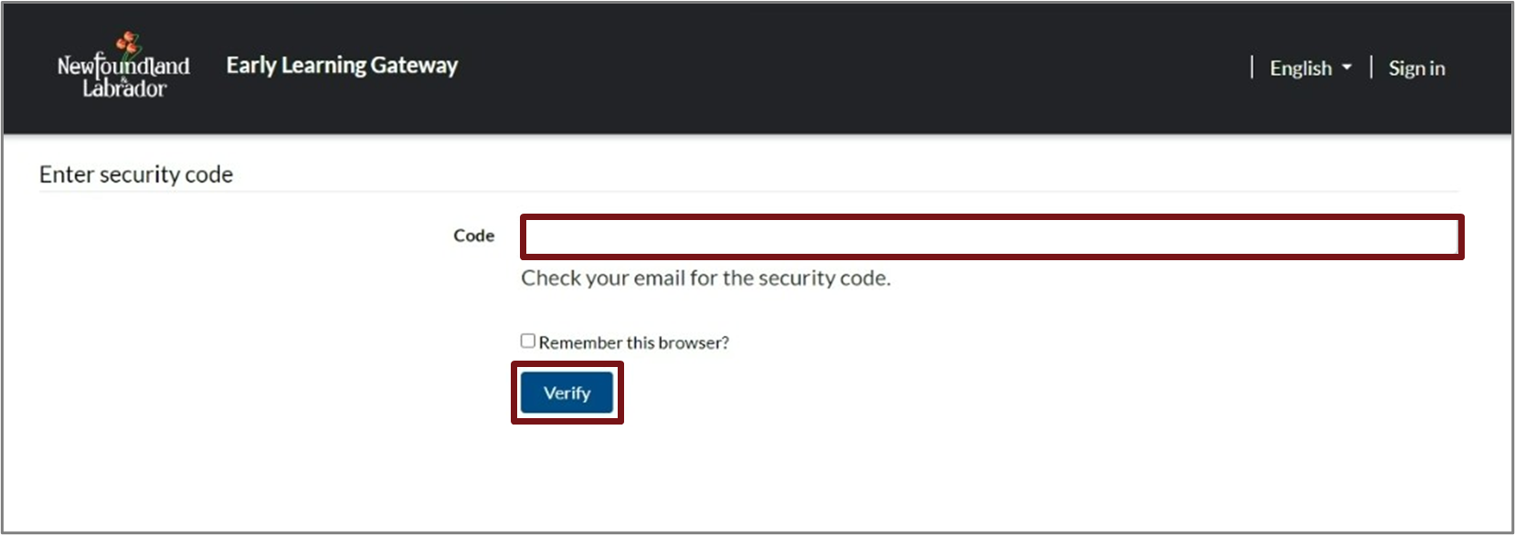 Once you enter your email and password, you will be prompted to enter a security code that will be sent to your email. Check your email, then enter the code. Click Verify.