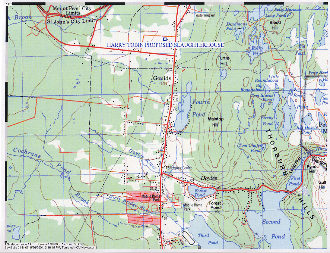 The proponent plans to build a 576 square foot abattoir to process 100 to 150 beef cattle a year adjacent to his present farm house on Lundrigans Road, in Kilbride. The proponent also plans to retail the products at the site including operating a deli service. Construction is planned to start in July of 2004 and will take approximately 3 weeks to complete.
