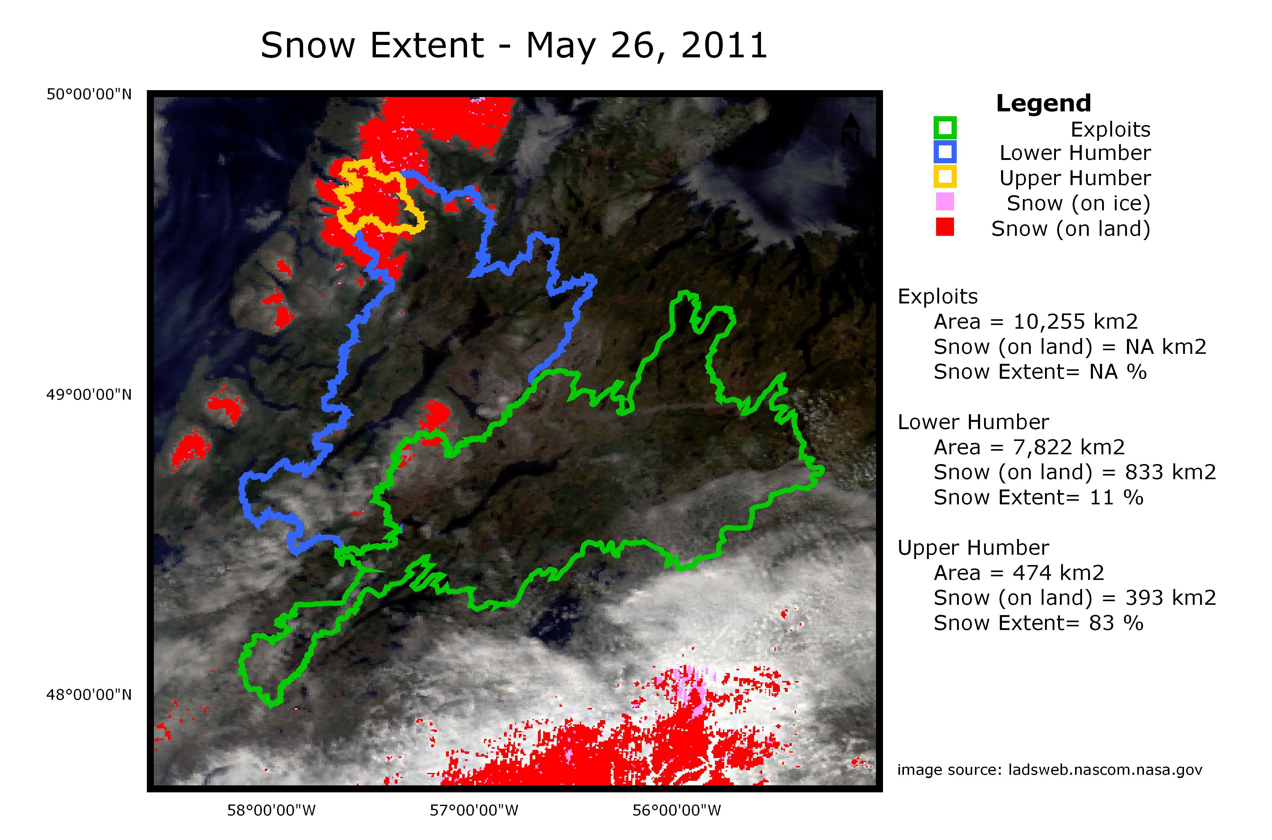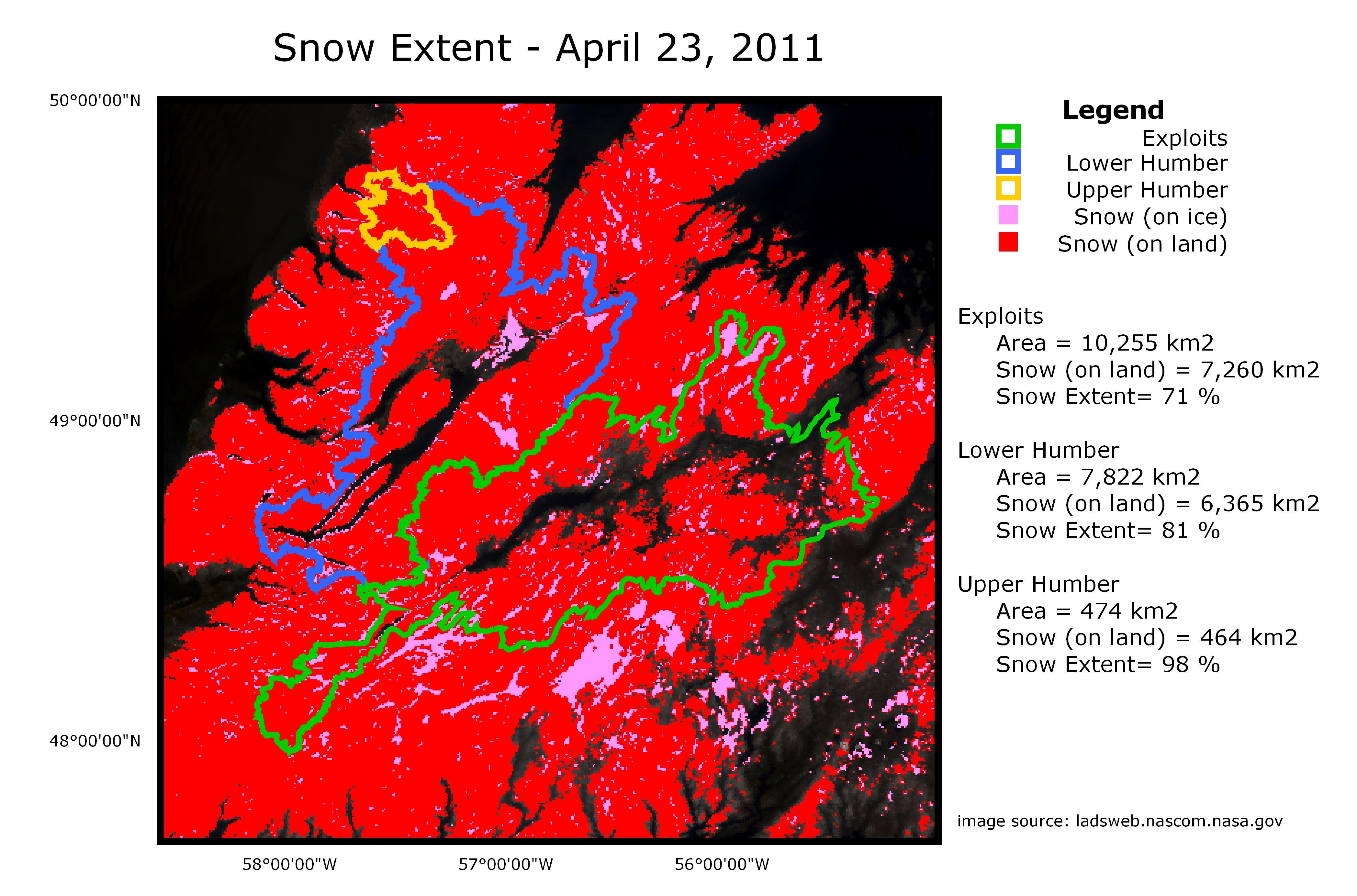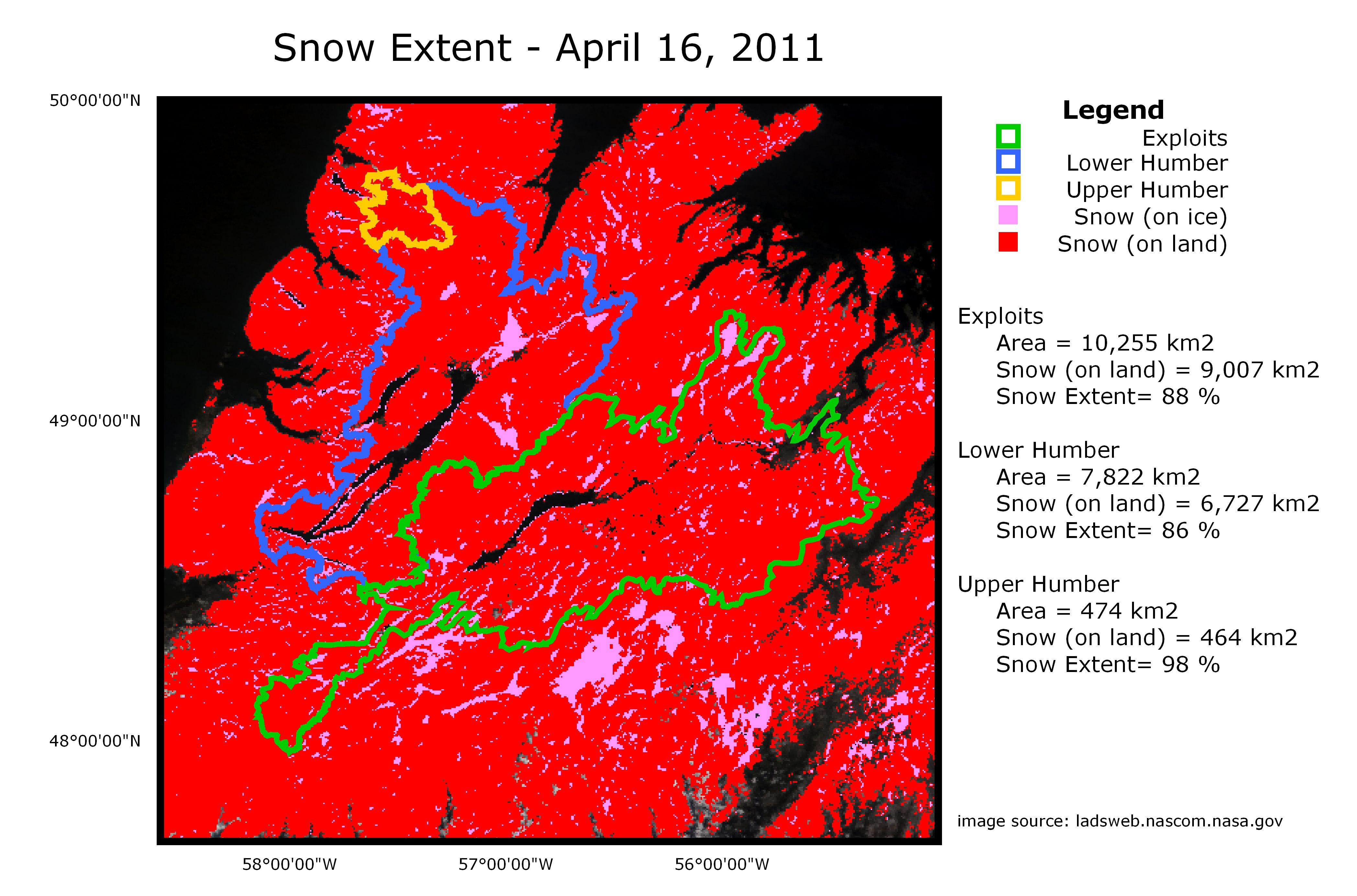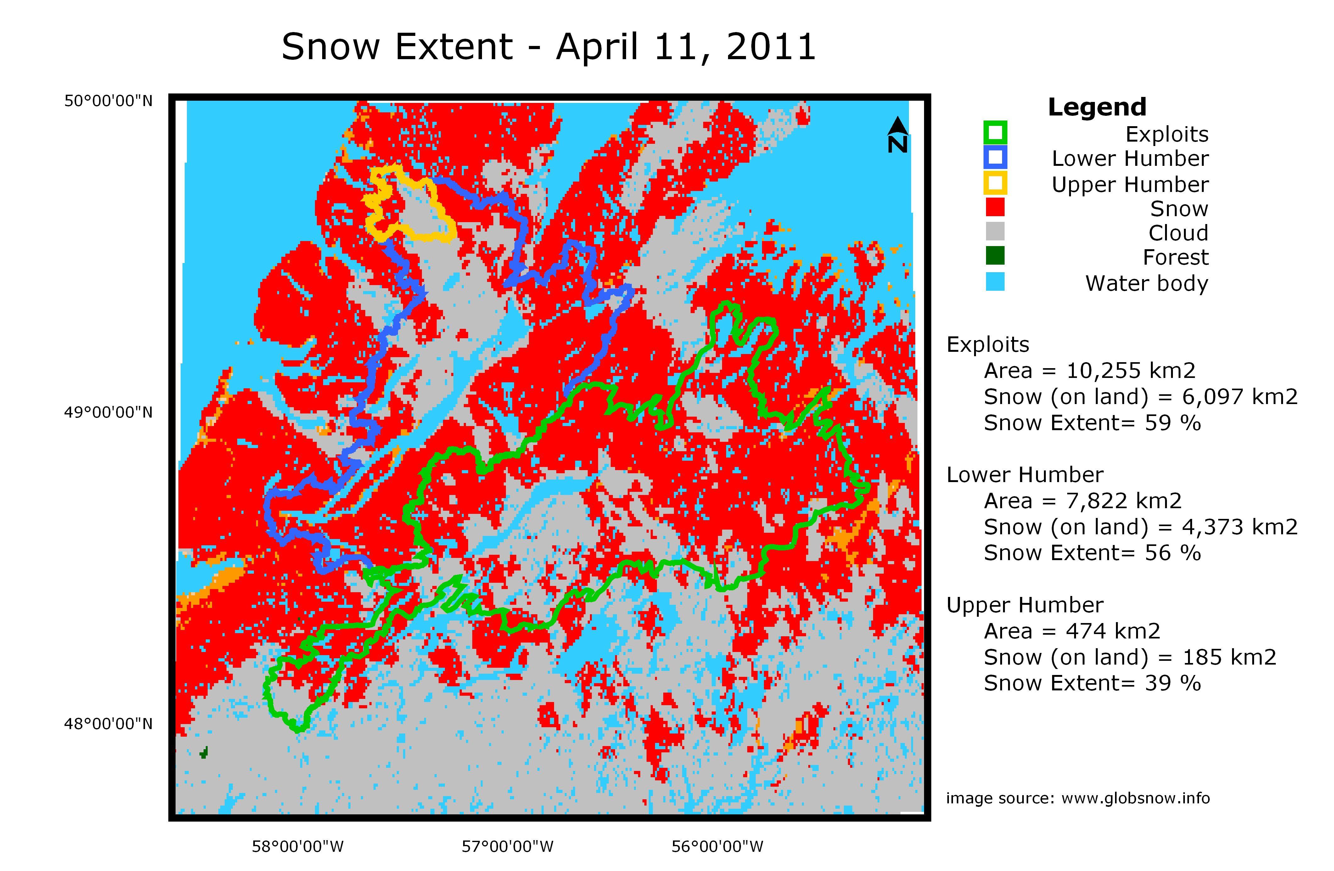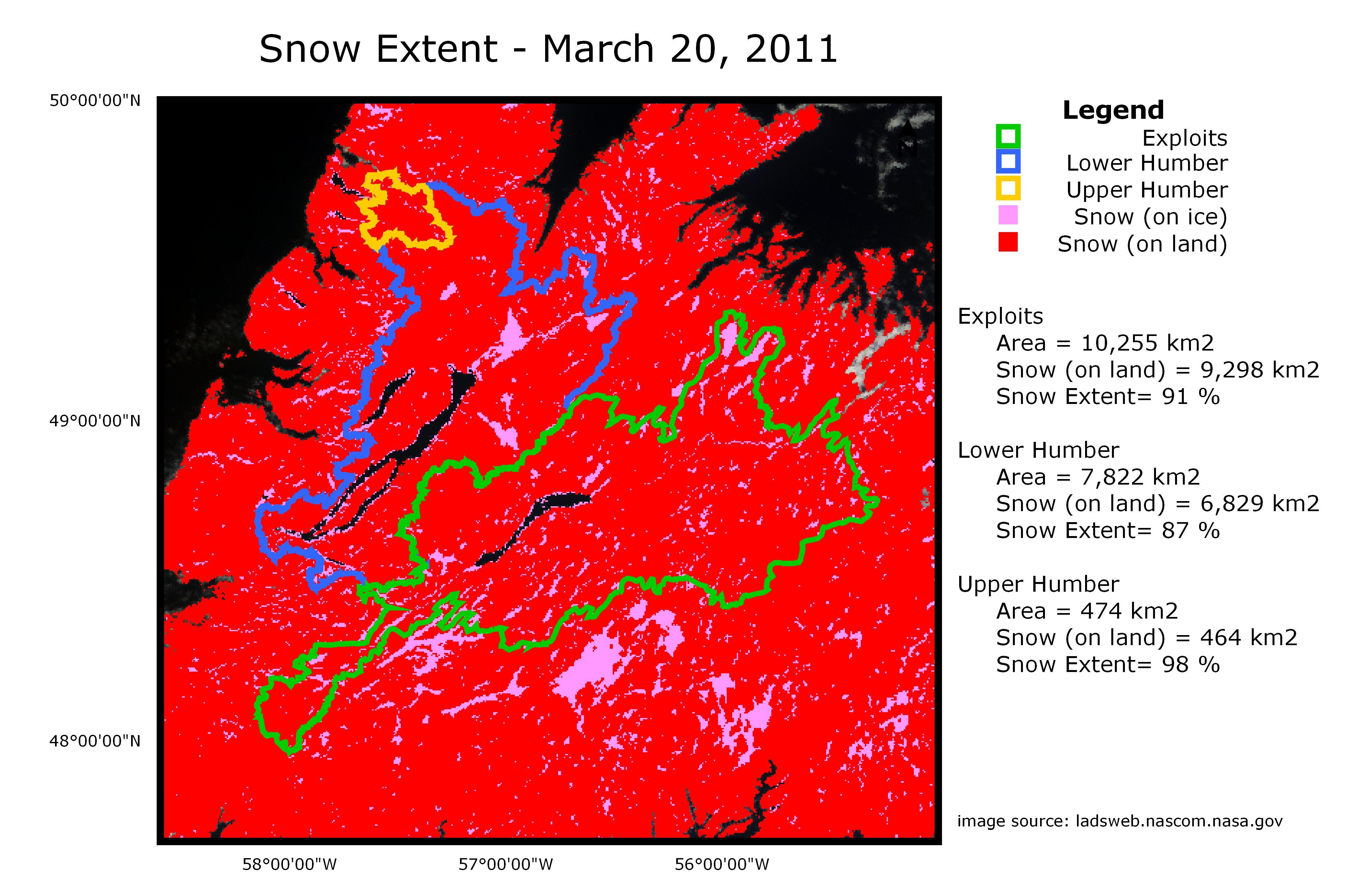 The snow products for the Upper and Lower Humber River Basin and the Exploits River Basin are provided in the following table.