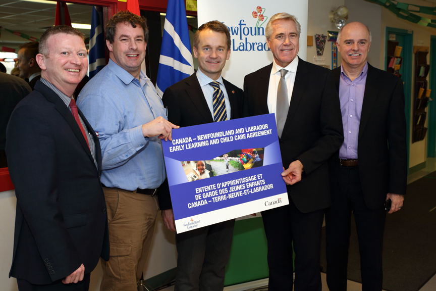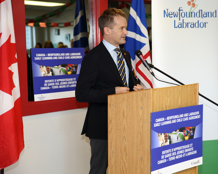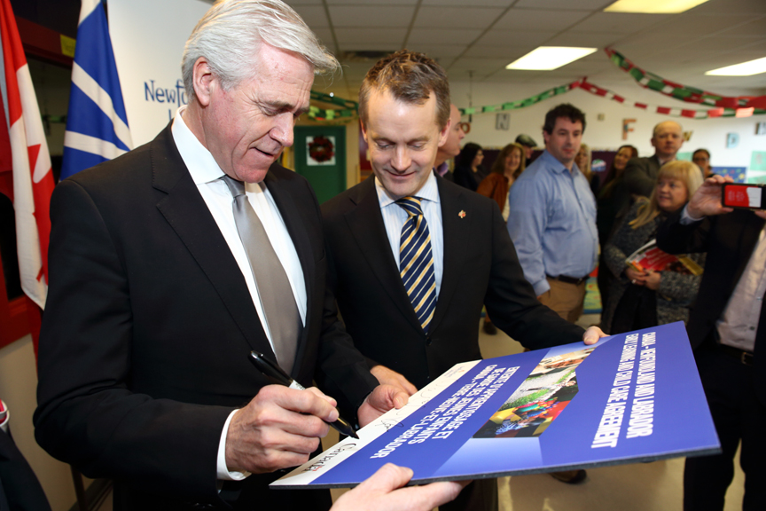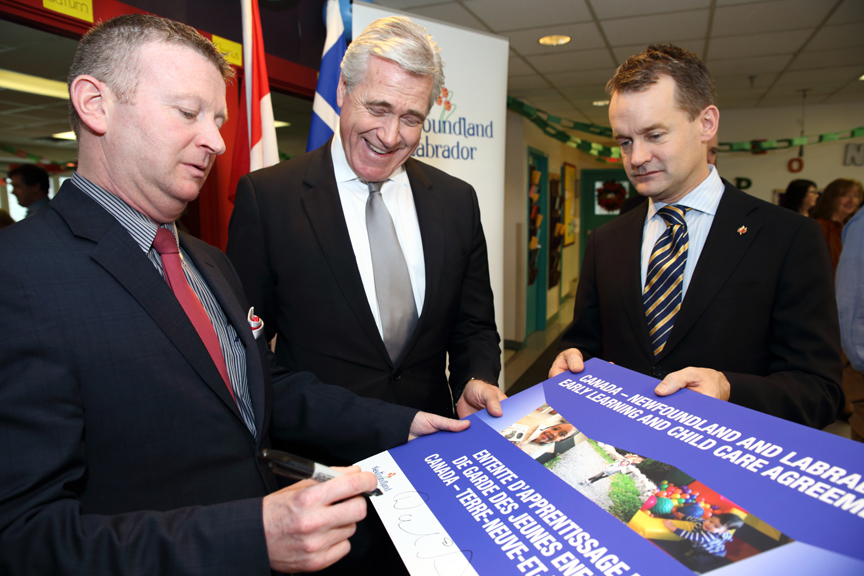 The Honourable Dwight Ball, Premier of Newfoundland and Labrador; the Honourable Seamus O’Regan, Minister of Veterans Affairs and Associate Minister of National Defense, on behalf of the Honourable Yves Duclos, Minister of Families, Children and Social Development; and the Honourable Dale Kirby, Minister of Education and Early Childhood Development for Newfoundland and Labrador, announced a three-year bilateral agreement that reaffirms their commitment to and support of the unique early learning and child care needs of Newfoundland and Labrador.