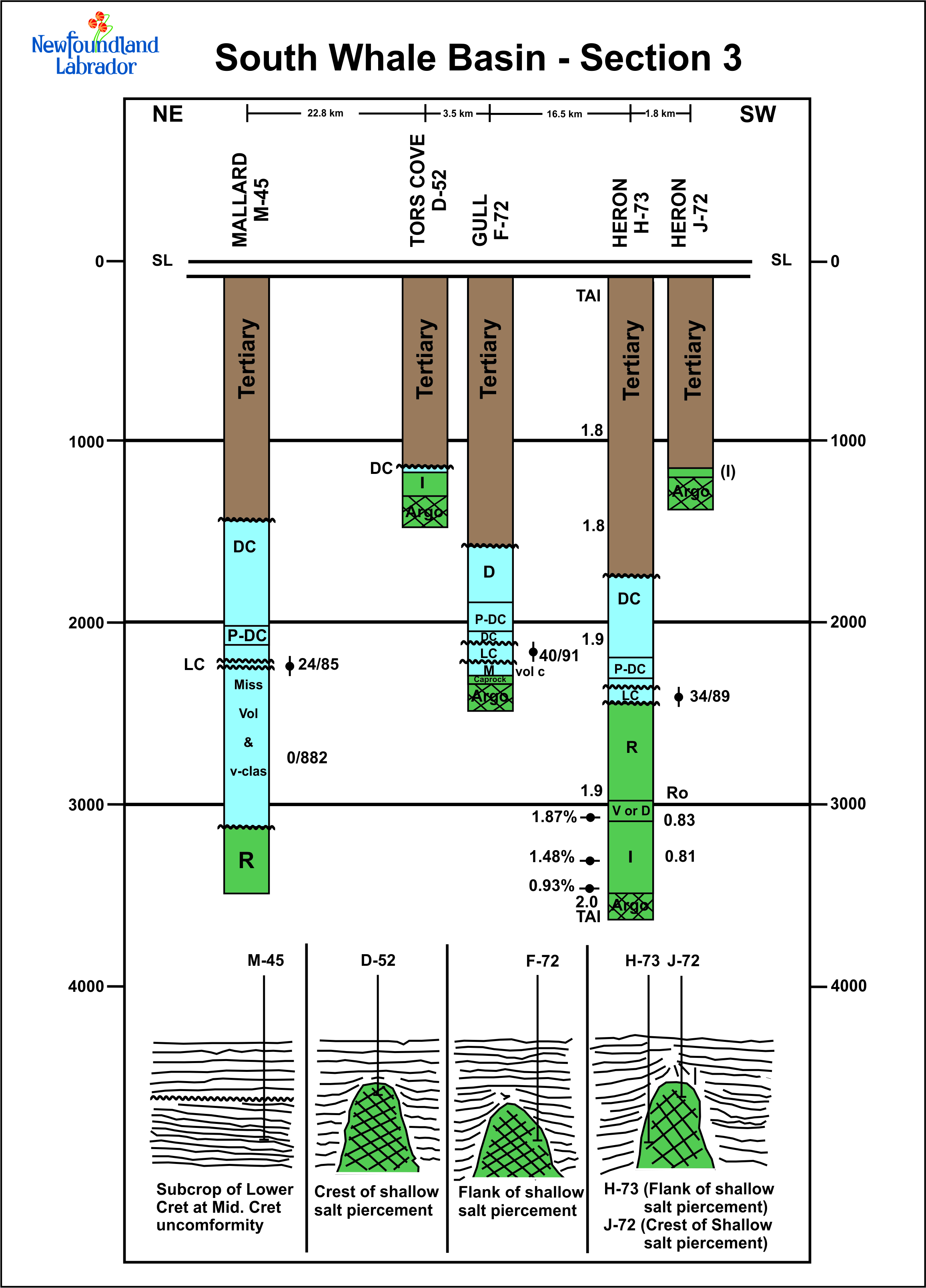 South Whale Basin Well Correlations *All links below will open in a new tab. Hermine E-94 to Tors Cove I-52 Mallard M-45 to Heron J-72 Merganser I-60 to Narwhal F-99