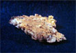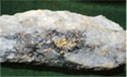 Gold (Au) is a precious metal used in jewelry. It has many industrial and medical applications. The photo on the left contains a specimen of gold in quartz vein is from an unknown location in Newfoundland. This sample is owned by the Provincial Museum.