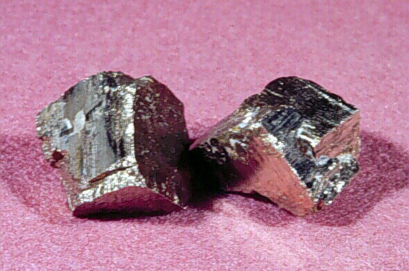 The pyrite in the photo on the left show the typical cubic structure of the mineral. The samples are from Catalina, Trinity Bay, and are owned by Loretta Crisby-Whittle. The sample on the right is part of the host mineral for the gold deposits at Royal Oak Mines, Hope Brook.