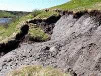 The landslide likely occurred through rotational failure, followed by liquefaction. Mud flowed over the lower slope, leaving grass intact. The material involved was interbedded glaciomarine sands, slits and clay, with clay the dominant component. Examination of slope morphology in the area suggested a history of former landslides.