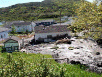 One week after a landslide took place at Trout River, a second, more serious landslide struck one house in the early morning and moved it off its foundations across the road.
