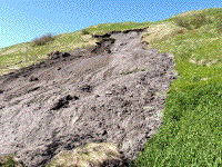 Even after the second landslide large tension cracks remained adjacent to the landslide scar, and a small amount of material fell 10 days later after further rain.