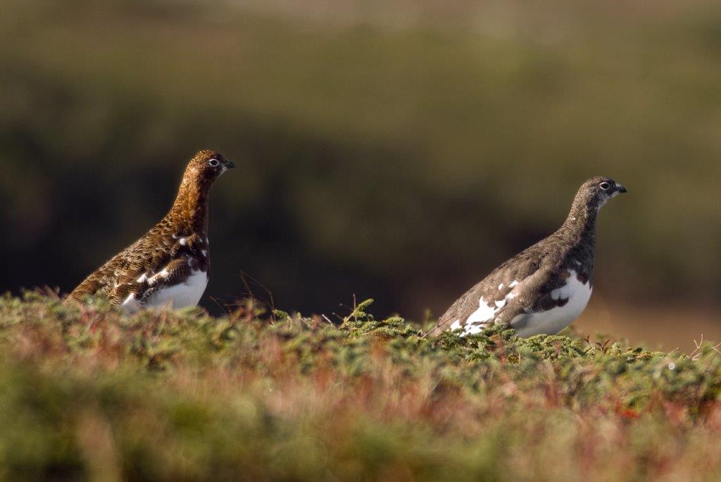 Photo by Mike McGrath: Willow Ptarmigan(L) and Rock Ptarmigan (R)