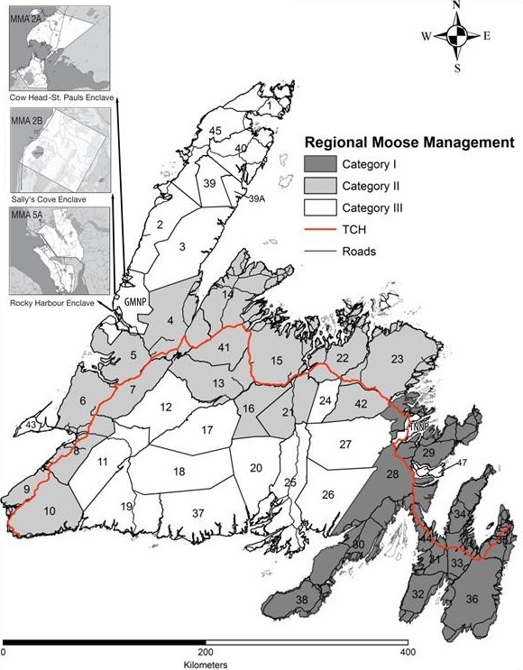 To reference a full map of all Moose Management Areas in Newfoundland and Labrador, see here.