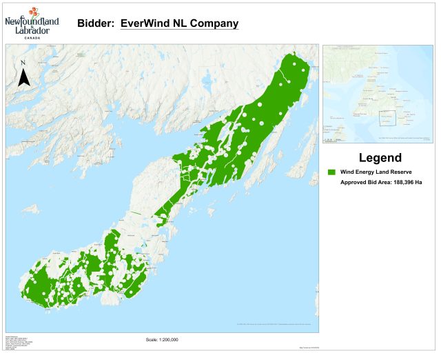 EverWind is proposing a multi-phase wind energy project to produce and export hydrogen/ammonia from facilities on the Burin Peninsula. As of March 31, 2025, EverWind has an approved bid area of approximately 188 thousand hectares.