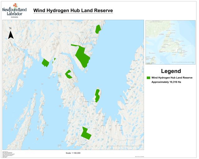 On July 23, 2024, a Wind Hydrogen Hub Land Reserve has been established for NARL Marketing Limited Partnership (NARL). NARL has received a wind hydrogen hub application recommendation reserve letter and have been granted the exclusive right to pursue the development of their project through the Government of Newfoundland and Labrador Crown land application and approval process, which includes a referral to Environmental Assessment (EA). Overview of Wind Hydrogen Hub Land Reserve