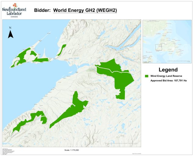 World Energy GH2 is proposing a three-phase project including wind turbines and a hydrogen/ammonia production facility. World Energy GH2 has an approved bid area of approximately 107 thousand hectares for the wind farm, storage and production facilities.