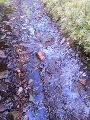 Water mould (Leptomitus lacteus), is one component of sewage fungus which has been known to thrive in winter conditions of cold, well oxygenated, fast flowing water. As the ‘slime’ was observed in late winter/early spring, water mould may have dominated the sewage fungus bloom.