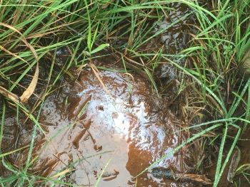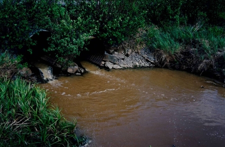 Sedimentation may also be from improper construction site methods, such as in the photo to the right where muddy water from a construction site several hundred meters away flowed into this stream.