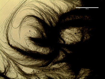 There may also be a rainbow-colored, oil-like sheen visible on the water. Quite often, an unpleasant odour is evident when iron bacteria masses are disturbed.