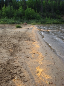 In the summer of 2011, several lakes in the province had a bright orange substance floating on the surface and accumulating along the shorelines.
