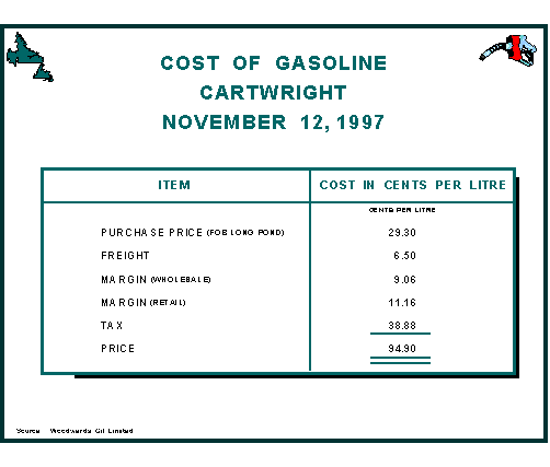 Given that the gasoline sold in Cartwright must be shipped to the Town and stockpiled for the winter, the operator would need to recover a gross retail margin higher than in St. John's.