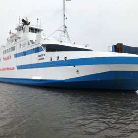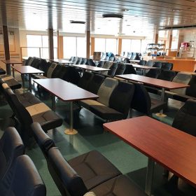 The vessel can transport 250 passengers, up to 200 vehicles, a maximum of nine tractor-trailers, and 125 units of freight.