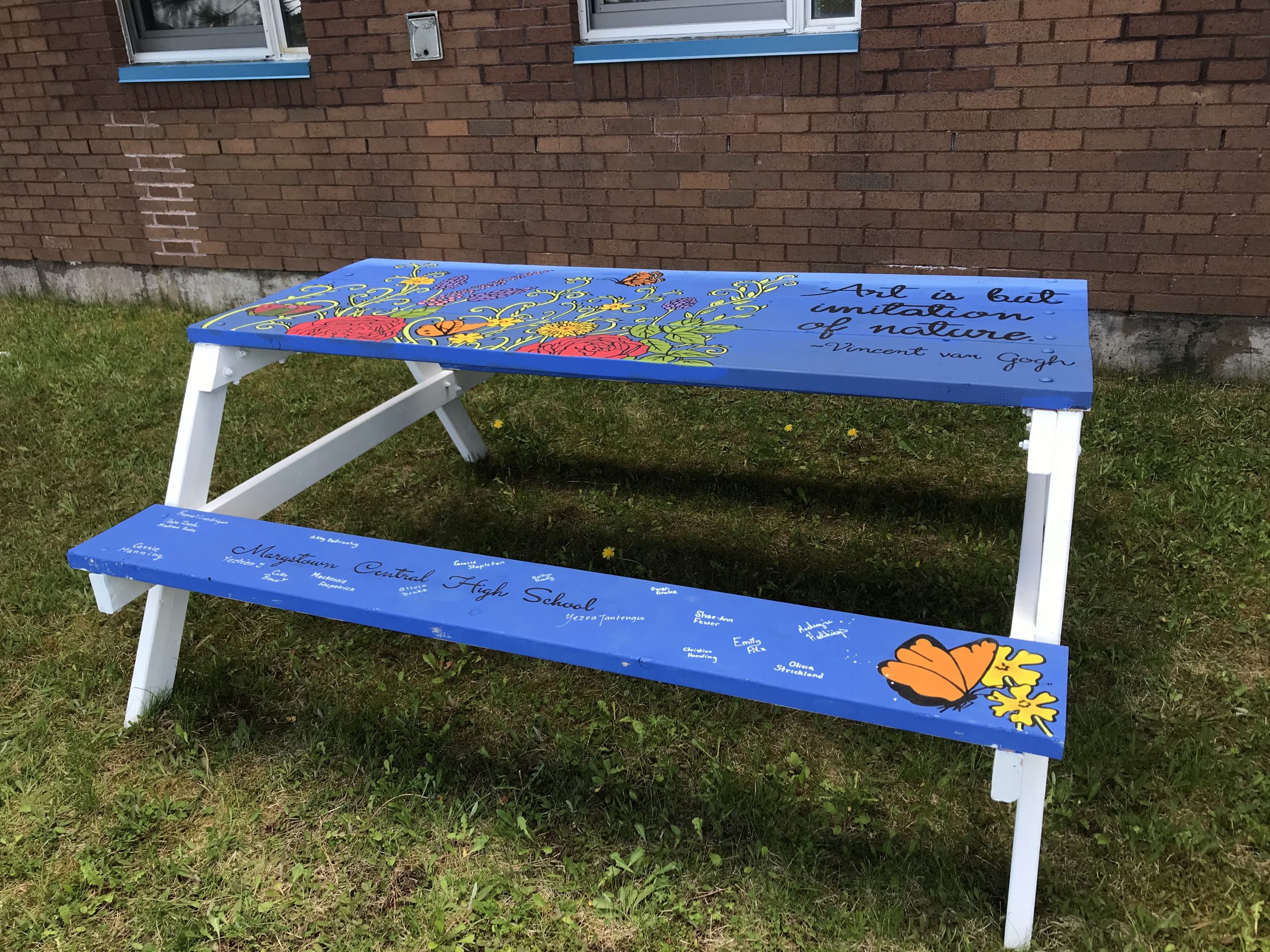 Each class received a wooden picnic table and a budget to purchase supplies such as paint and brushes. Participating classes named their work of art, including their school name and the year and the finished table will be displayed in a nearby Provincial Park.