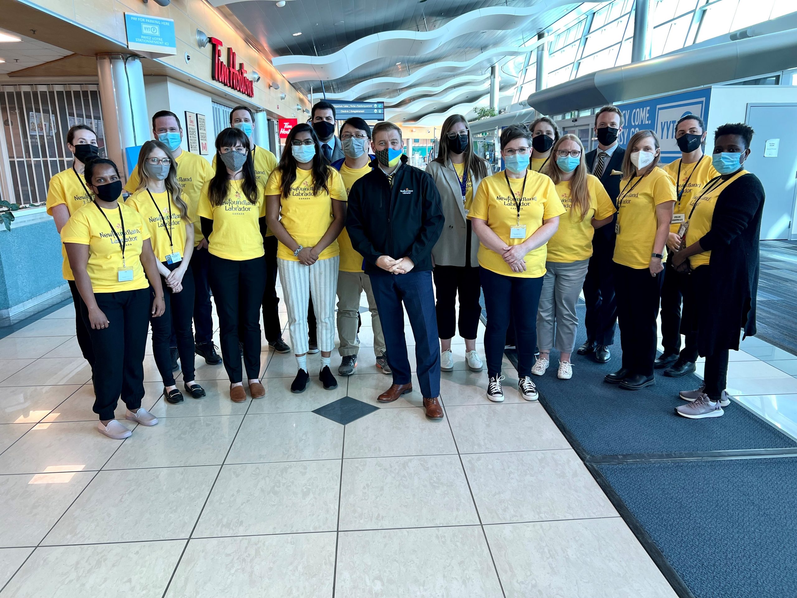 The Honourable Andrew Furey along with provincial government officials and members of the Association for New Canadians prepare to welcome Ukrainian refugees to Newfoundland and Labrador.