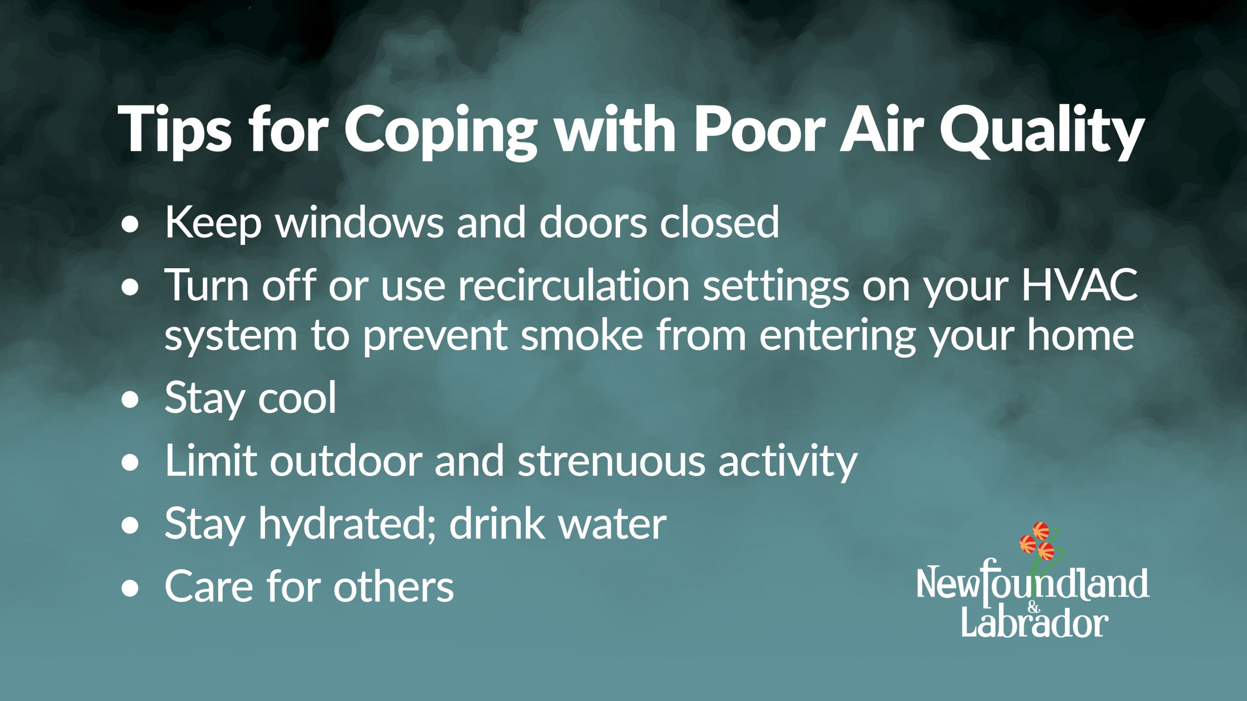 To protect yourself, if there is smoke in the area, you should keep windows and doors closed as long as the temperature is comfortable and turn off or use recirculation settings on your HVAC system to prevent smoke from entering your home. For more information on what health impacts it can have and how to protect yourself, please see the backgrounder below.