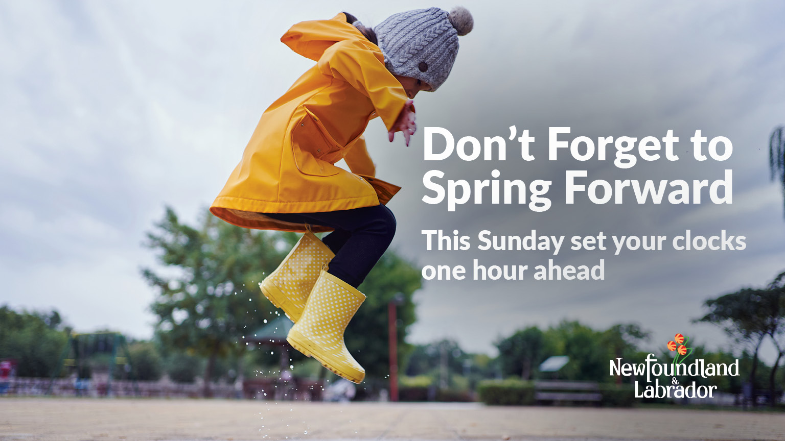 Residents of Newfoundland and Labrador are reminded that Daylight Savings Time begins this weekend. At 2:00 a.m. on Sunday, March 12, clocks should be set one hour ahead.