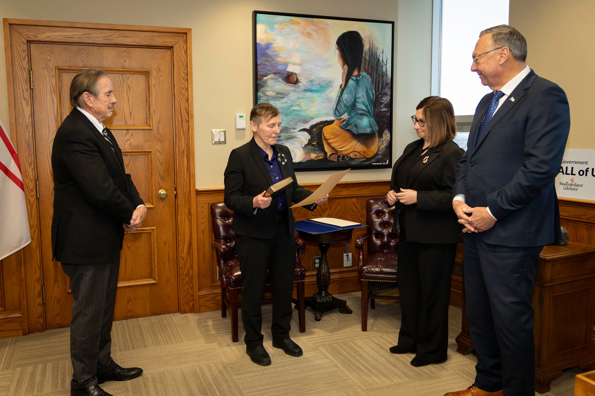 The swearing-in ceremony took place today with the oath being administered by the Honourable Chief Justice Raymond P. Whalen, Chief Justice of the Supreme Court of Newfoundland and Labrador, as administrator.