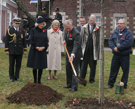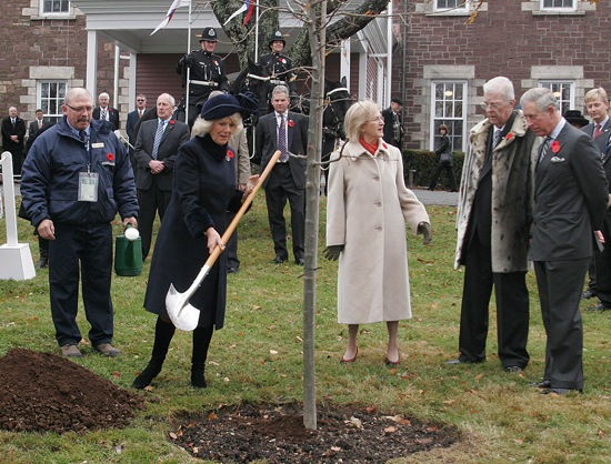 Her Royal Highness, The Duchess of Cornwall, helps plant a tree at Government House.