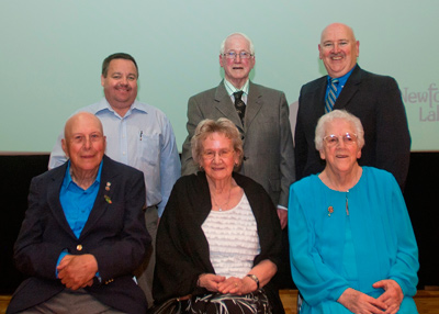 Top row: William Brake, on behalf of Agnes Brake (Little Rapids), R. Thomas Mills (St. John’s), The Honourable Dave Denine, Minister for Intergovernmental Affairs and Minister Responsible for the Volunteer and Non-Profit Sector. Bottom row: John Nicholas Jeddore (Conne River), Nellie Caul (Stephenville), and Julia Best (Placentia).