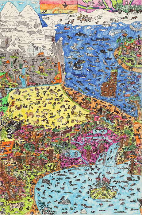- Joshua Mack, St. John’s, Title: The Wondrous Wildlife of Asia (Paint/markers on canvas)