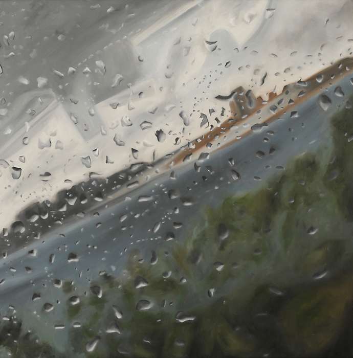 - Olivia Stacey, Grand Falls – Windsor, Title: St. Lawrence River through a Bus Window (Oil on board)