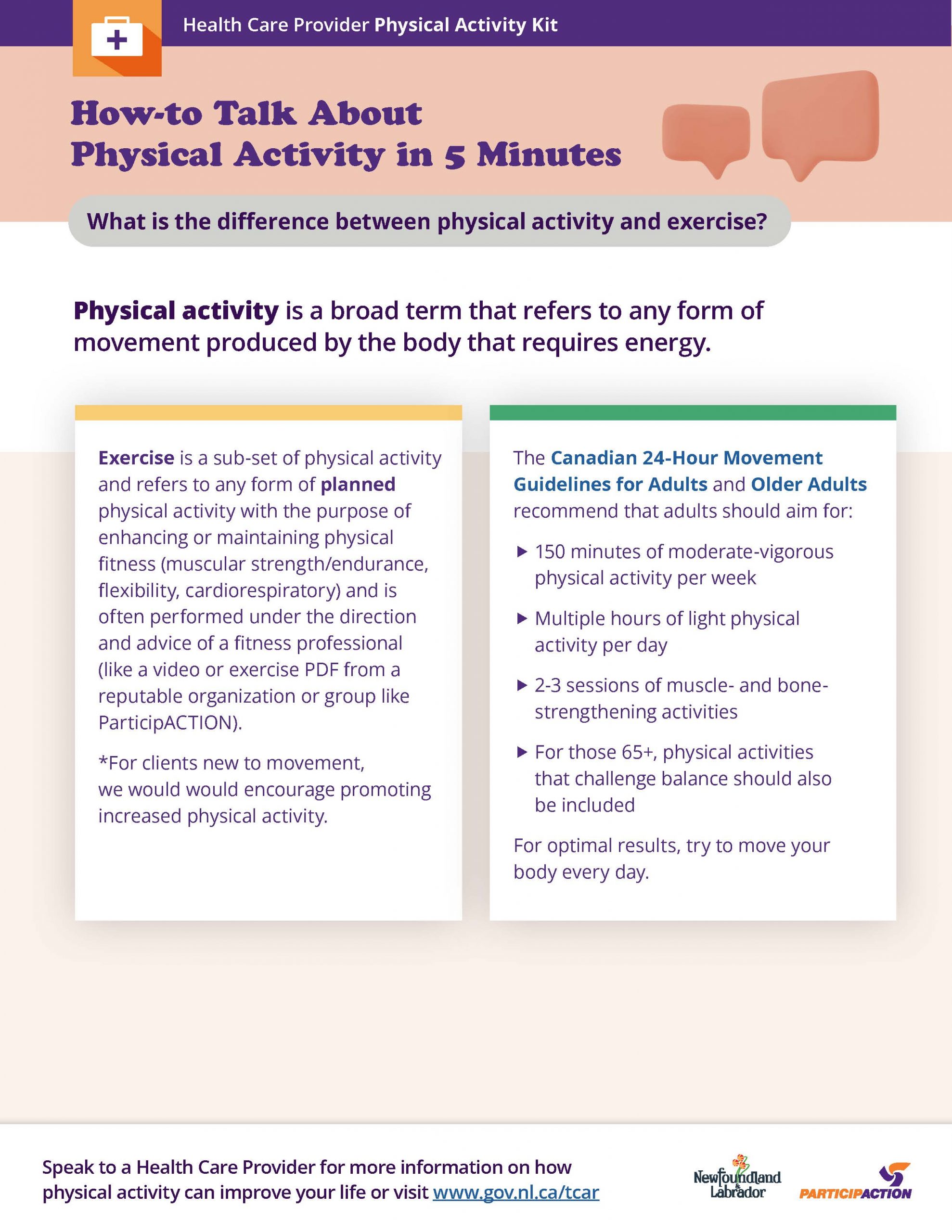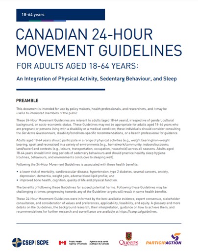 | The Canadian Society for Exercise Physiology has developed “The Whole Day Matters Primary Care Toolkit” which is designed to assist primary care providers in Canada with promoting optimal levels of physical activity, sedentary behavior and sleep. In line with the Canadian 24 Hour Movement Guidelines for Adults 18-64 and 65+. Feel free to use this along with the other materials above to support you in working with your clients to improve their overall health and well-being.