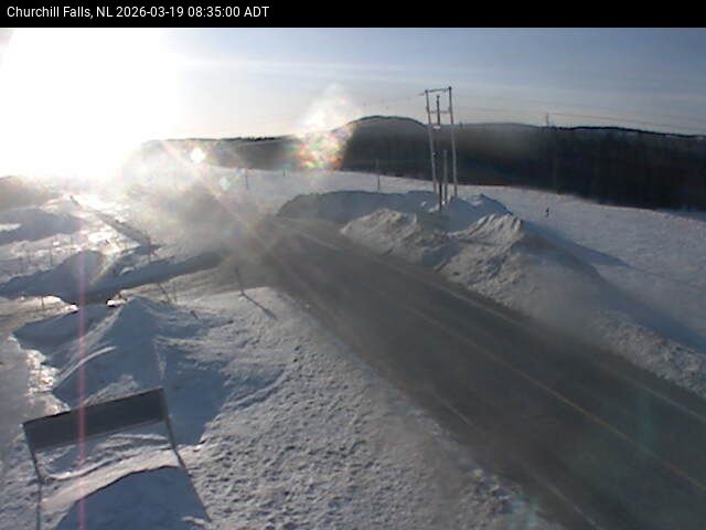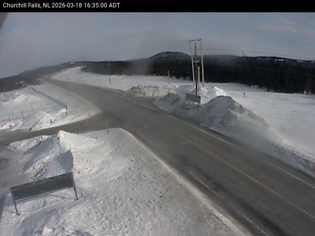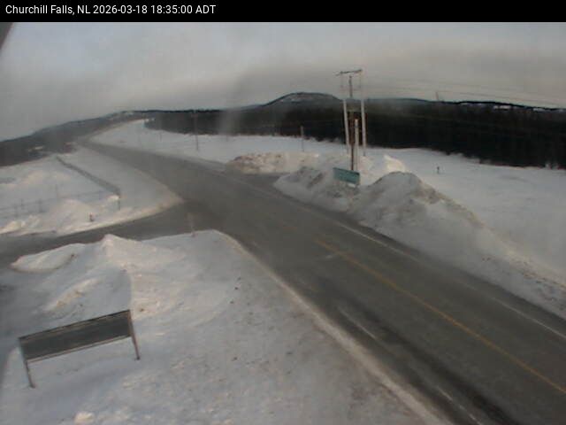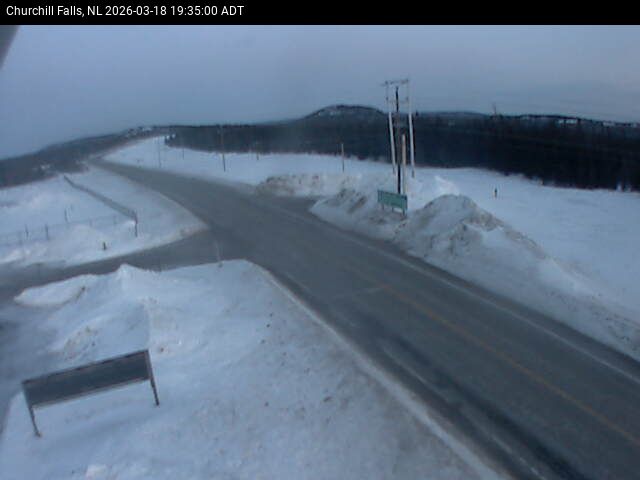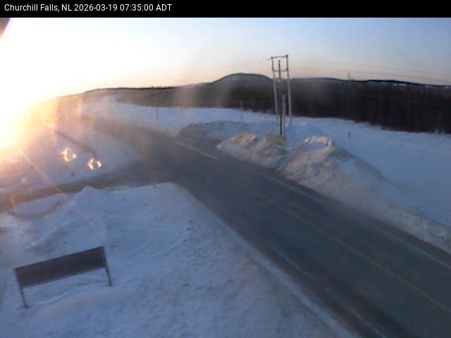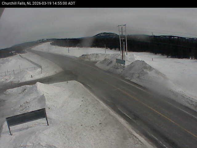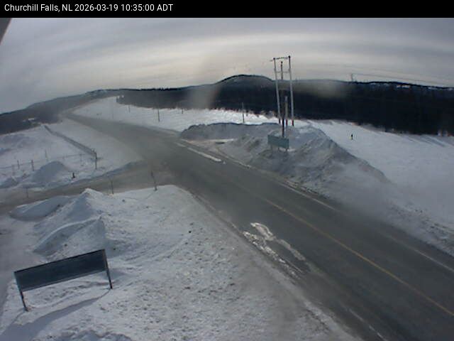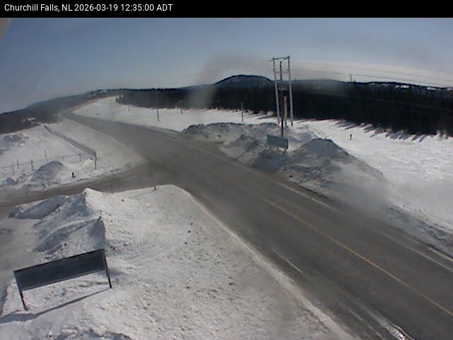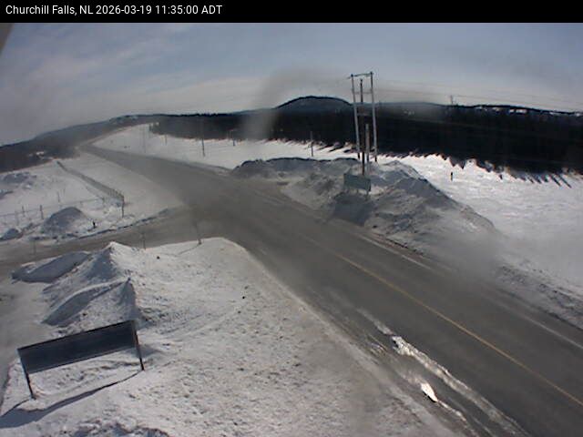 The Churchill Falls weather station is at the Churchill Falls Airport, on Route 500 TLH, pointing East towards Churchill Falls.